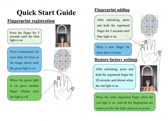 Upptäck en säker och praktisk lösning för din säkerhet med vårt nyckellösa fingeravtryckslås. Denna smarta hänglås är både vattentålig och portabel, vilket gör den perfekt för alla typer av dörrar och lagringslösningar. Med snabb fingertoppsavläsning på 0,2 sekunder och hållbar design av zinklegering, erbjuder den ett utmärkt skydd mot inbrott. Den fungerar med ett inbyggt laddningsbart batteri och har en vattenbeständighetsklassning på IP66 för ytterligare trygghet.